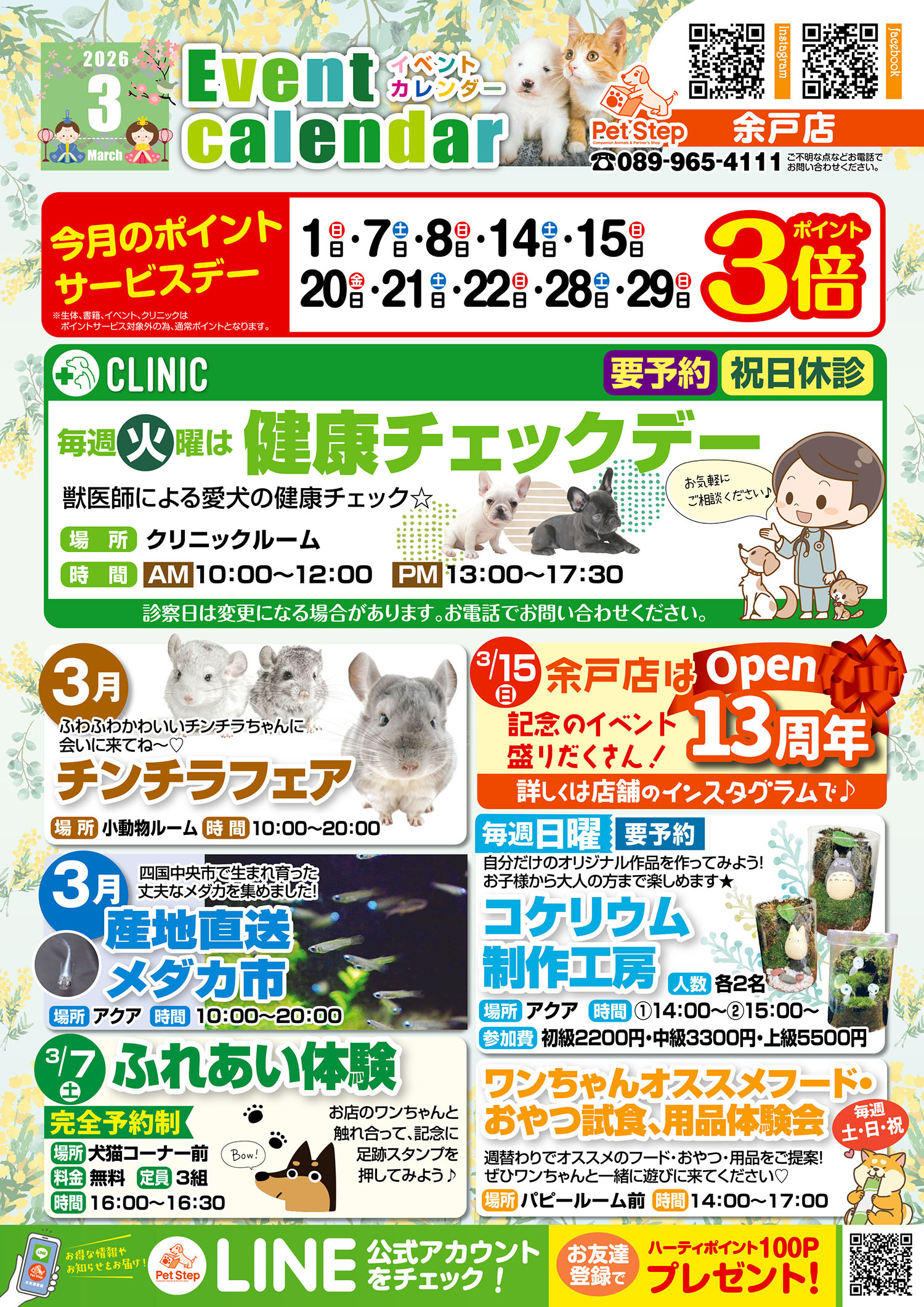 ハムスターやウサギ、小鳥など、森の小さな仲間たちが皆様のご来店をお待ちしています。
